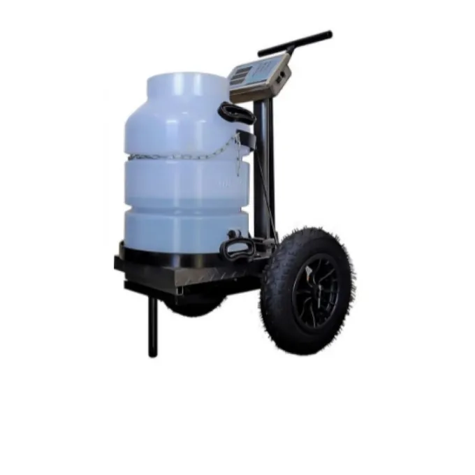 o primeiro medidor de leite tipo balança ele acoplado no carrinho ou seja é além de funcionar como um carrinho de transporte de leite é levar o leite até o resfriador ele funciona também uma balança medidora de leite