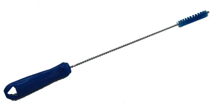 Escova cilíndrica fina, utilizada para limpar locais específicos de difícil acesso, possui cerdas curtas com cabo anatômico.